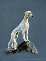 Plain background portraits often use something to “anchor” the figure, such as a shadow at the base of the figure, or the rock under the white Saluki.